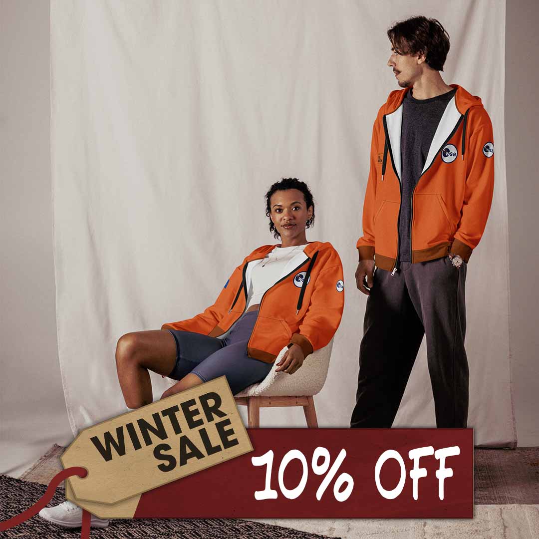 Is the orange a fashion statement or a safety colour should you need to evacuate the shuttle? We don't really know. But meet the Deliver Us The Moon 'Rescue' zip hoodie—a must-have for every space adventurer. Crafted from 95% recycled polyester, this hoodie not only supports sustainability but also captures the spirit of exploring new frontiers. With a soft, breathable interior and exterior, this unisex hoodie ensures warmth in the coldest conditions, just like the lunar surface. Its relaxed fit and drop shoulders make it ideal for both casual Earth days and interstellar missions. Designed to withstand the test of time, it’s a cozy, lasting tribute to humanity’s reach for the stars.